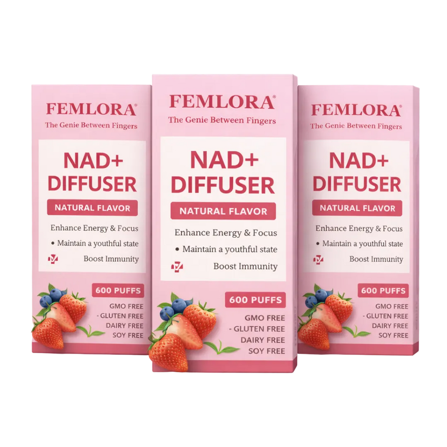 No. Femlora uses room-temperature air drawn over a botanical blend. No nicotine, no tobacco, no vapor, no combustion, no heating element, no PG/VG, no vitamin E acetate. It’s a wellness diffuser — the same way an essential oil diffuser works, but portable and designed for NAD+ delivery.